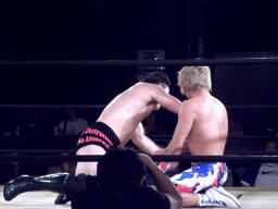 日高ローキック、佐藤はヒザ立ちでエルボー(右写真)。