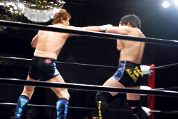 金本グーパンチ(左写真)、佐藤よろめく。