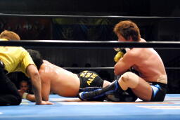 金本再度アンクルホールド、佐藤切り返して逆にアンクルホールドに(右写真)。