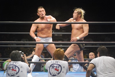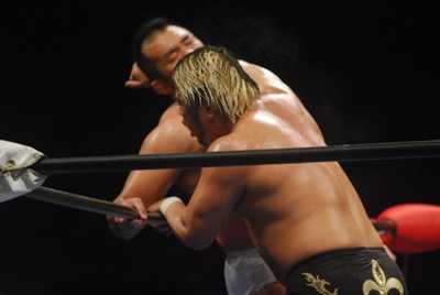 リストクラッチ式エクスプロイダー(左写真)、諏訪魔2で返す。30分経過。