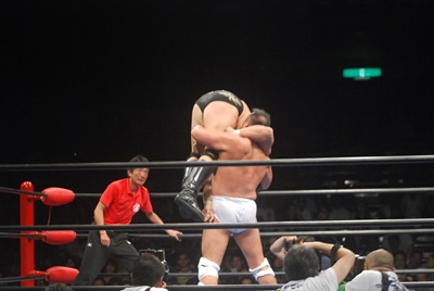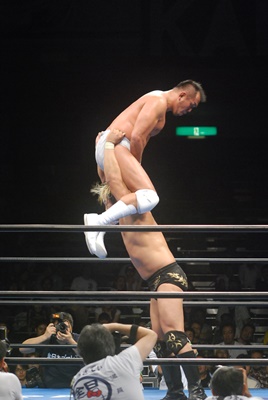 秋山フィッシャーマンの形で諏訪魔を持ち上げ(右写真)、