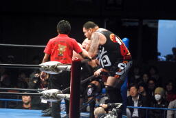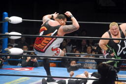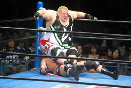 曙河野に乗る(左写真)。ボディスラムからエルボードロップ、カウント2。