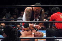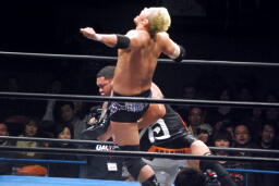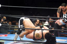 浜DDT(左写真)、カウント2。