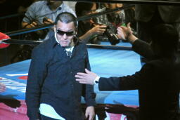 後半戦のゲスト解説の蝶野が登場(左写真)、1.9のイベントを宣伝した後実況席に。