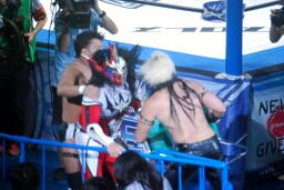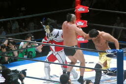 注意するレフェリーに食って掛かる鈴木(左写真)。この間にタイチがさらにライガーに攻撃。