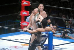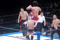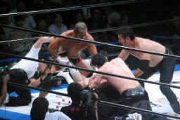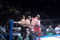 西川は雅央がボディスラム、みんなでフォール(右写真)。