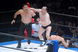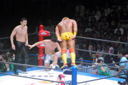 立会人のザ・デストロイヤーがリングに。相当足が悪そう。「先週、徳光、イチバーン!今日、アナタ、イチバーン!」(右写真)