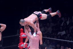 志賀が外道に外道クラッチ(右写真)、カウント3。