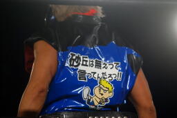 臼田ローキック(左写真)、ミドルキック連打、日高ダウン。スリーパー、山本にタッチ。
