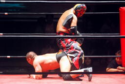 両足がっちり固めるが(左写真)カウントは2。ちなみにシクロン・ラナは初公開だったそうだ。