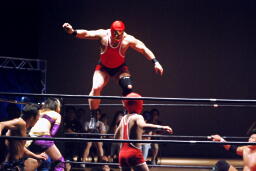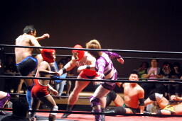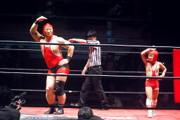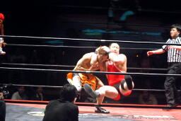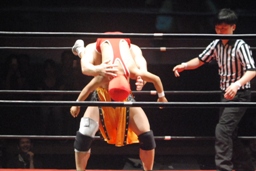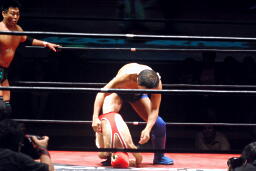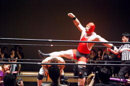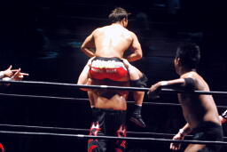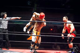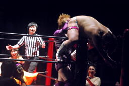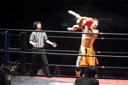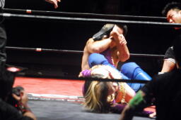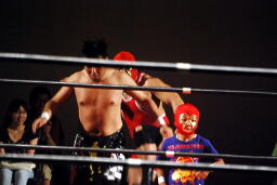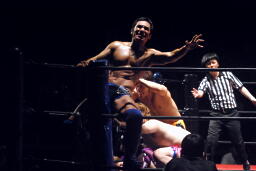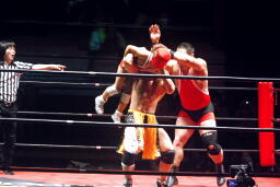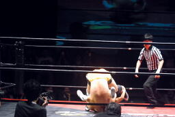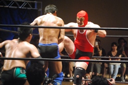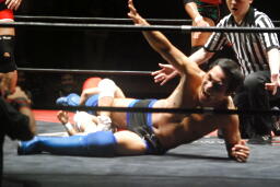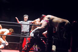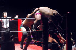 高梨スクールボーイ(右写真)、カウント3。岸和田ズ退場。