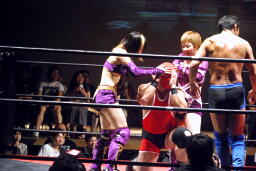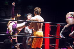 7番目、大家健&MIYAWAKI入場。これもX&XXか。美央ハイキック(右写真)、