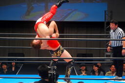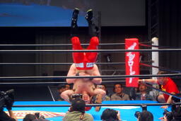佐藤をマットに突き刺す(右写真)。