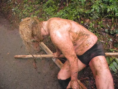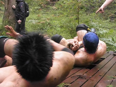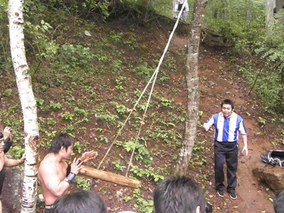 大家、4人がかりで木に挟まれる(右写真)。全く抵抗できず。