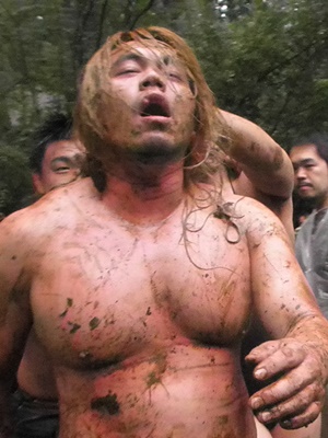 イサミがKUDOに首投げ(左写真)。