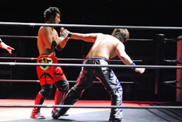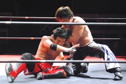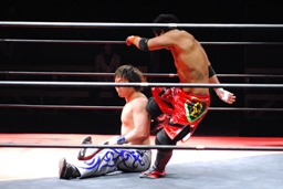 安部エルボー(右写真)、HARASHIMAもエルボー。