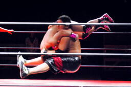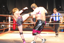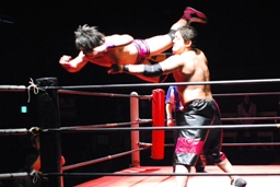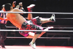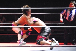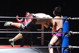 コーナーに上ってミサイルキック(左写真)。