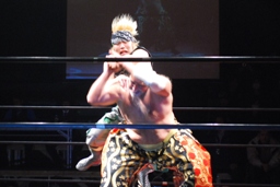 GENTAROボディスラム、コーナーに上ってローリングセントーン(右写真)、星誕期カット。