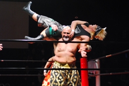 ウラノかわしてバック取る、ロープに押し込んでウラカン・ラナ・インベルティダ(右写真)、カウント2。