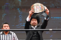 KO-D無差別級のベルトがGMによって掲げられる(左写真)。