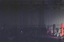 ディーノがボブ・サップを追ってアメリカまで行った映像は残念ながら流せず。ということで場内が暗くなり(右写真)、「音声のみ流しますので後は各自の脳内で補完してください」のアナウンス。そして流れる音声。声は本人ではなく男色ディーノ=今林久弥、ボブ・サップ&トリニティ=村田晴郎、ナレーション=さくらえみだったらしい。ラジオドラマ!豪華声優陣!しかし中身はジョジョと北斗の拳が適当に混ざった世界。空条承太郎と名乗るし。そしてディーノへの第1の刺客のジョナサン・グレシャムであることが明らかに。これはマンガのキャラ名ではないな。