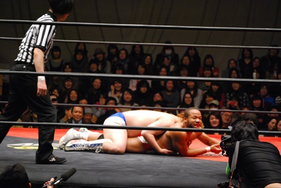 グレシャムかわして逆さ押さえ込み(右写真)、カウント2。