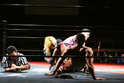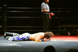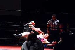 アントンがスクールボーイ(右写真)、松井レフェリーはGMをほっといてレフェリー業務遂行、カウントは2。