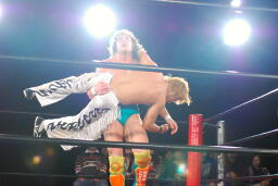 ケニー再び肩車、MIKAMIは背後に着地して(右写真)、