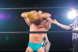 MIKAMIブレーンバスター狙う、ケニー逆に持ち上げ(左写真)、
