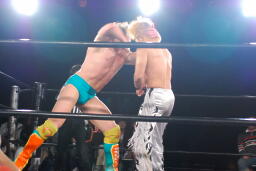 こんなシングルマッチはなかなか見られるもんではない。KO-D挑戦者決定トーナメントの前哨戦的な色合いもあるが、あっちは短時間決戦になりがちだからなあ。
