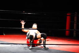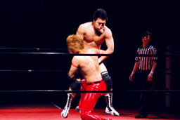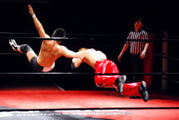 高尾が引き起こそうとしたところを平田首固め(右写真)、カウント2。