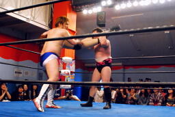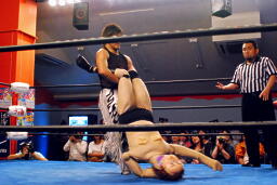 ヨシヒコクロスボディ(左写真)、カウント2。