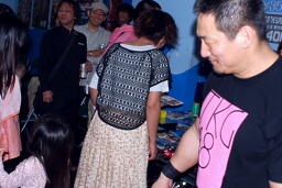 ヨシヒコ夜の部はマイケルを従えてゲートから入場、最前列の客とハイタッチ(左写真)。