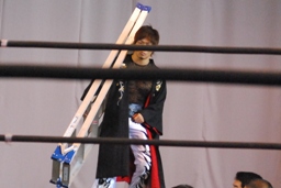 MIKAMI、vsニラ戦というのにラダー持参で入場(右写真)。