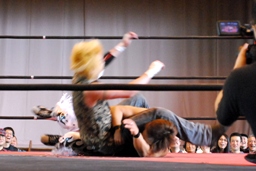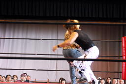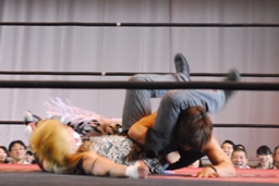 MIKAMIスク〜ルボ〜イ、ニラ切り返してエビ固め(右写真)、カウント2。