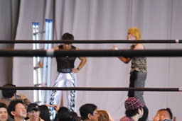 MIKAMIがリングに戻ると「また挑発に乗ったな。さあアンパイア、闘いの聖なるゴングを再び鳴らせ。」(右写真)