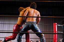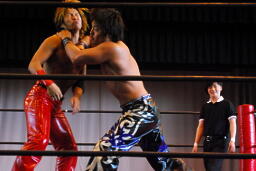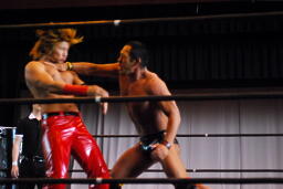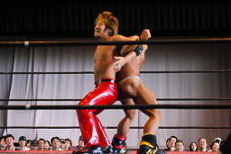 高尾エルボー(右写真)、マイケルもエルボー。高尾エルボー、マイケルは逆水平。