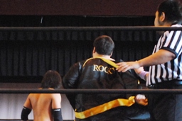 KUDOバズソーキック(右写真)、コーナーに上る。