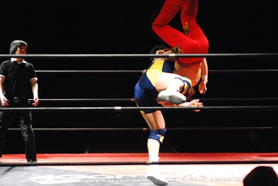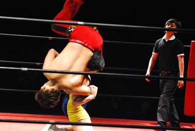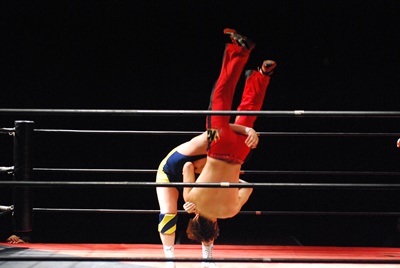 トウナイ飛鳥落とし(左写真)、カウント2。
