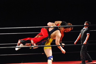 ロックアップ(右写真)、トウナイが腕を取る、福田切り返す。