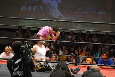 そしてメインはKO-D無差別級選手権、石川修司 vs KUDO(左写真)。ほかMIKAMI vs ポイズン澤田JULIE、男色ディーノ vs ボブ・サップが決定。残りカードは7月3日の新木場で決まるかな?直前まで紆余曲折ありそうだが。