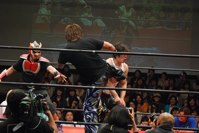 IWGPジュニアヘビー級選手権、飯伏幸太 vs プリンス・デヴィット(右写真)。