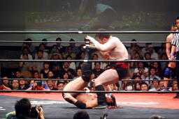 アントンと邪道はダブルのフラップジャック(右写真)、アントンニースタンプ、カウント2。