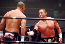 外道入場(左写真)。ディック東郷の国内最後の相手に選ばれた先輩。