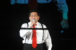 ディック東郷が花道に姿を現す(右写真)。