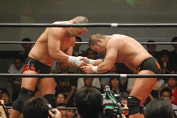 外道はカニばさみで倒して外道クラッチ狙うが東郷回避(右写真)、