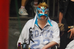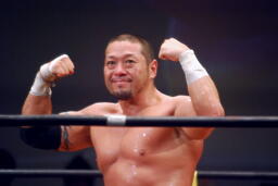 ザ・グレート・サスケ。なんで「廣島には野次る価値がある」Tシャツなんだ!(左写真)