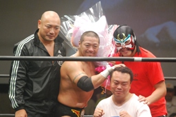 続いてDDT選手勢。まずは飯伏(右写真)。