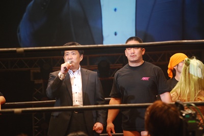 ここで高木から重大発表。なんと来年の15周年記念興行は日本武道館で行う、と(左写真)。