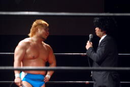 休憩前、飯伏が告知のためリングイン(右写真)。
